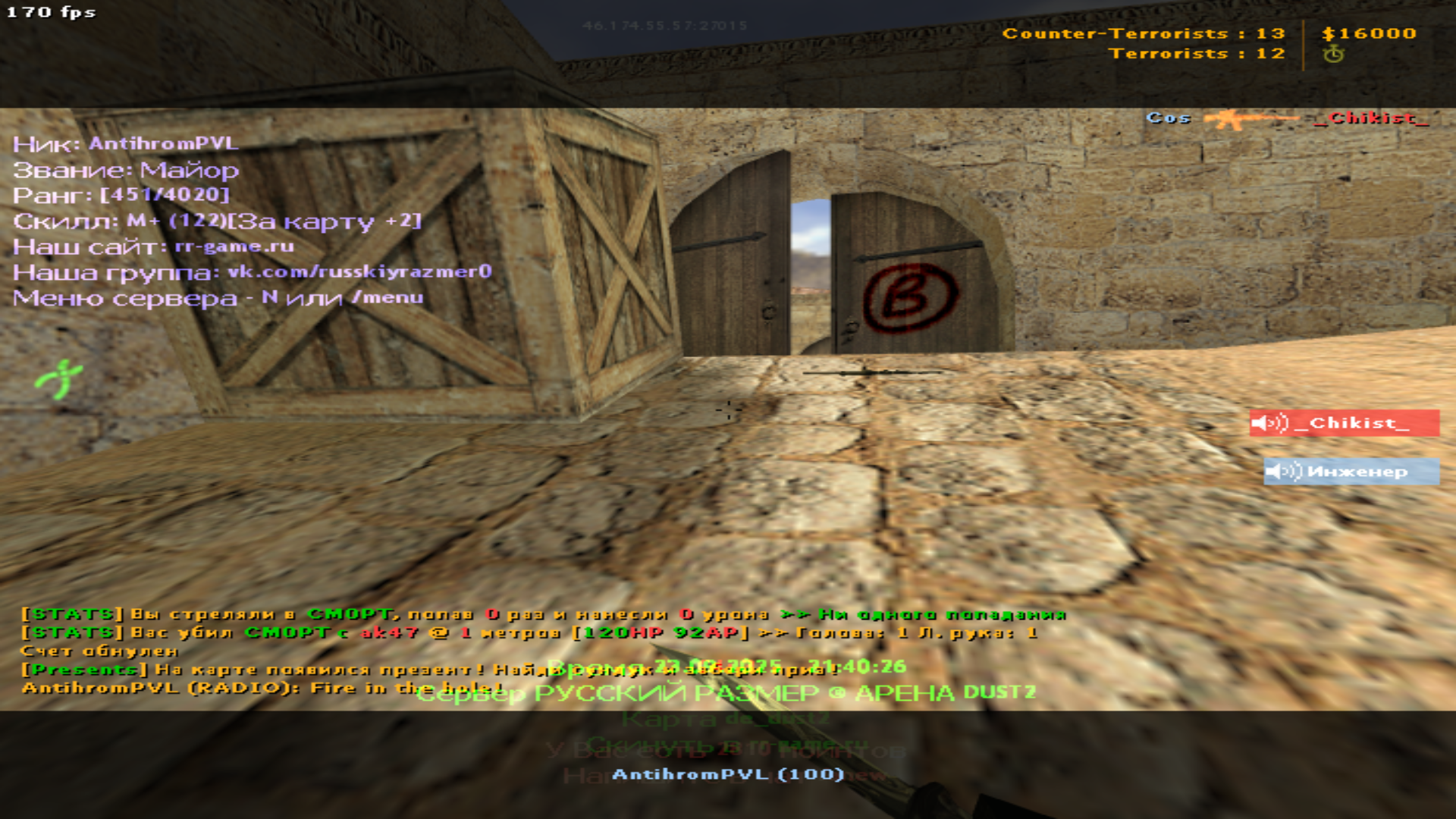Сервер: Русский Размер ® Арена dust2