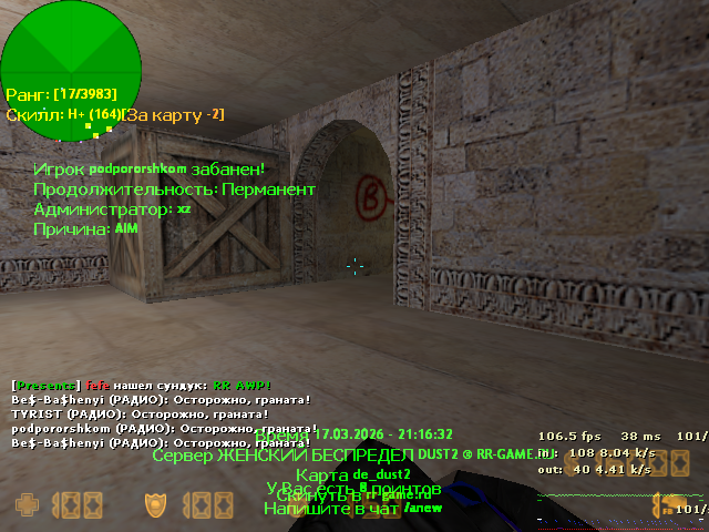 Сервер: ЖЕНСКИЙ БЕСПРЕДЕЛ DUST2 ® RR-GAME.RU